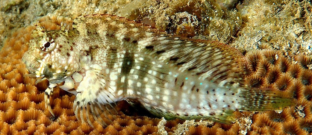 Dorsal spines (total): 12; Dorsal soft rays (total): 18-20; Anal spines: 2; Anal soft rays: 19-21. Body depth about: 3.7-4.2 in length, head small, branched supraorbital and nuchal cirri. Lip margins smooth. No notch in dorsal fin, dorsal and anal fins attached to base of caudal fin by a membrane. Adult males have elongated anterior rays on the anal fin. Max. length: 14.0 cm TL. Depth range: 0 - 8 m.