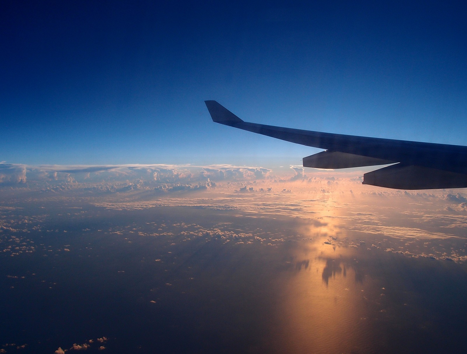 Photogaphie prise par le hublot d'un airbus à une altitude de 11582m lors d'un vol Nouméa - Tokyo (Compagnie Air Calin).