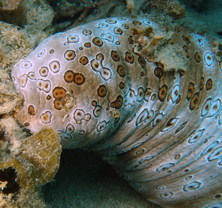 Holothurie léopard, Bêche de mer, géante aux cent yeux, Leopard sea cucumber, eyed sea cucumber, white-spotted black sea cucumber, leopard fish, tiger fish, spotted fish, Leoparde-Seegurke, Luipaard-zeekomkommer.