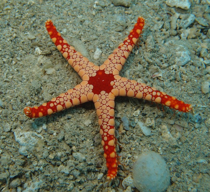 Etoile à mailles rouges, Etoile élégante, Etoile de mer marbrée, Red mesh starfish, Necklace sea star, Peppermint sea star, Tiled starfish, Roter Maschen-Seestern, Perl-Seestern, ジュズベリヒトデ,