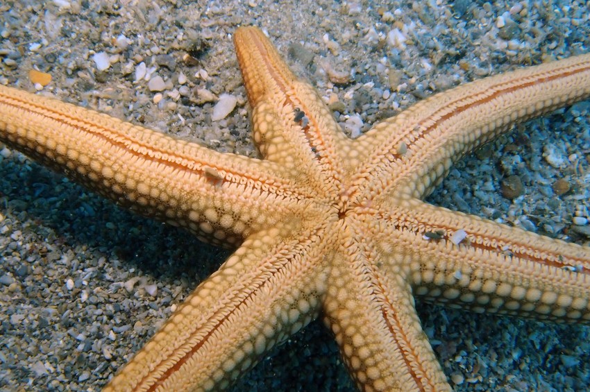 Yellow mesh sea star, Peach Tip Nardoa, Etoile de mer réticulée,