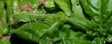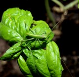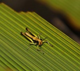 • Pseudophyllanax imperialis Coconut Grasshopper New Caledonia insect endemiq Cocos nucifera banana