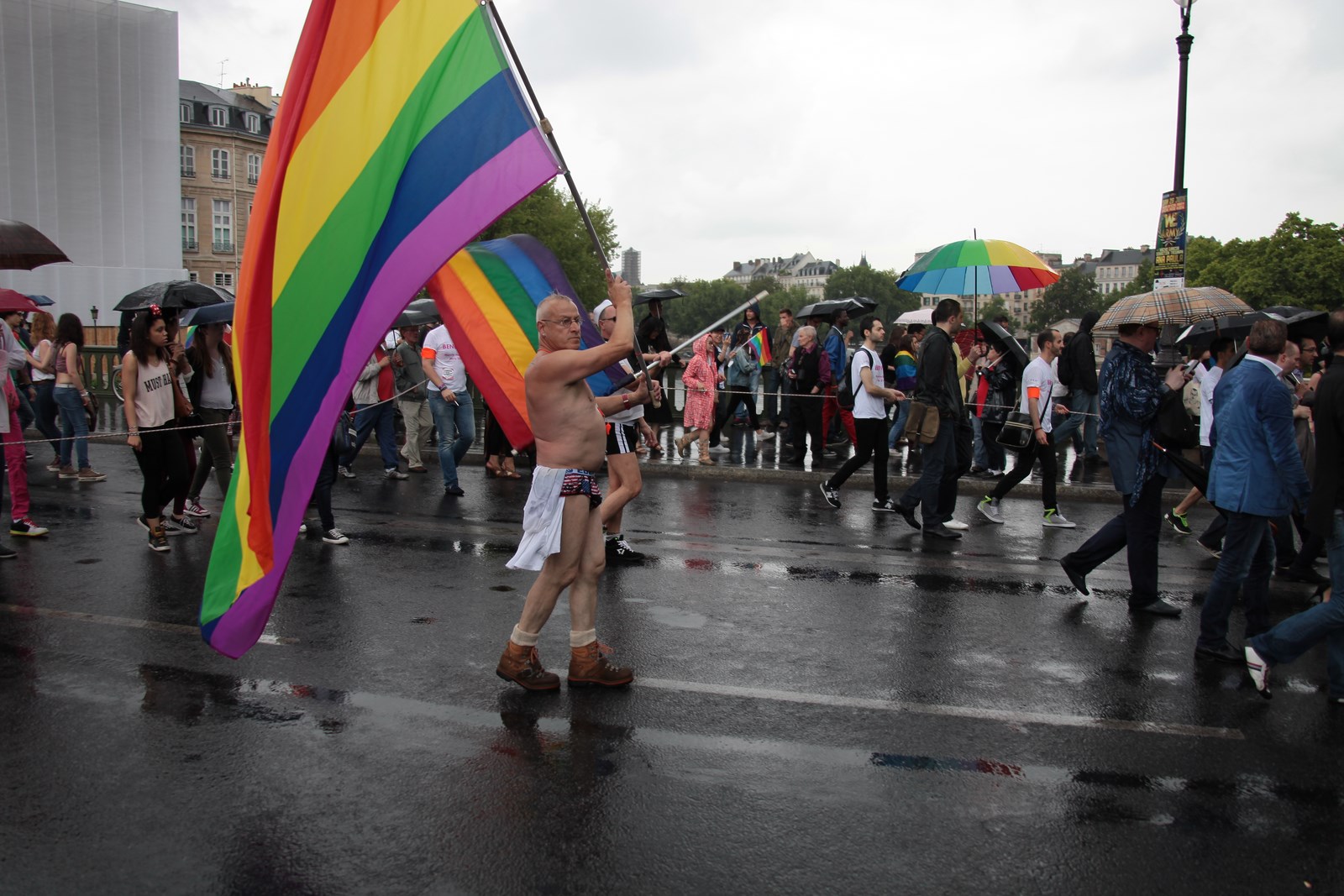Porte drapeau Gay Pride Paris 2014 fiertés lesbiennes gaies bi trans homophobie homosexuel