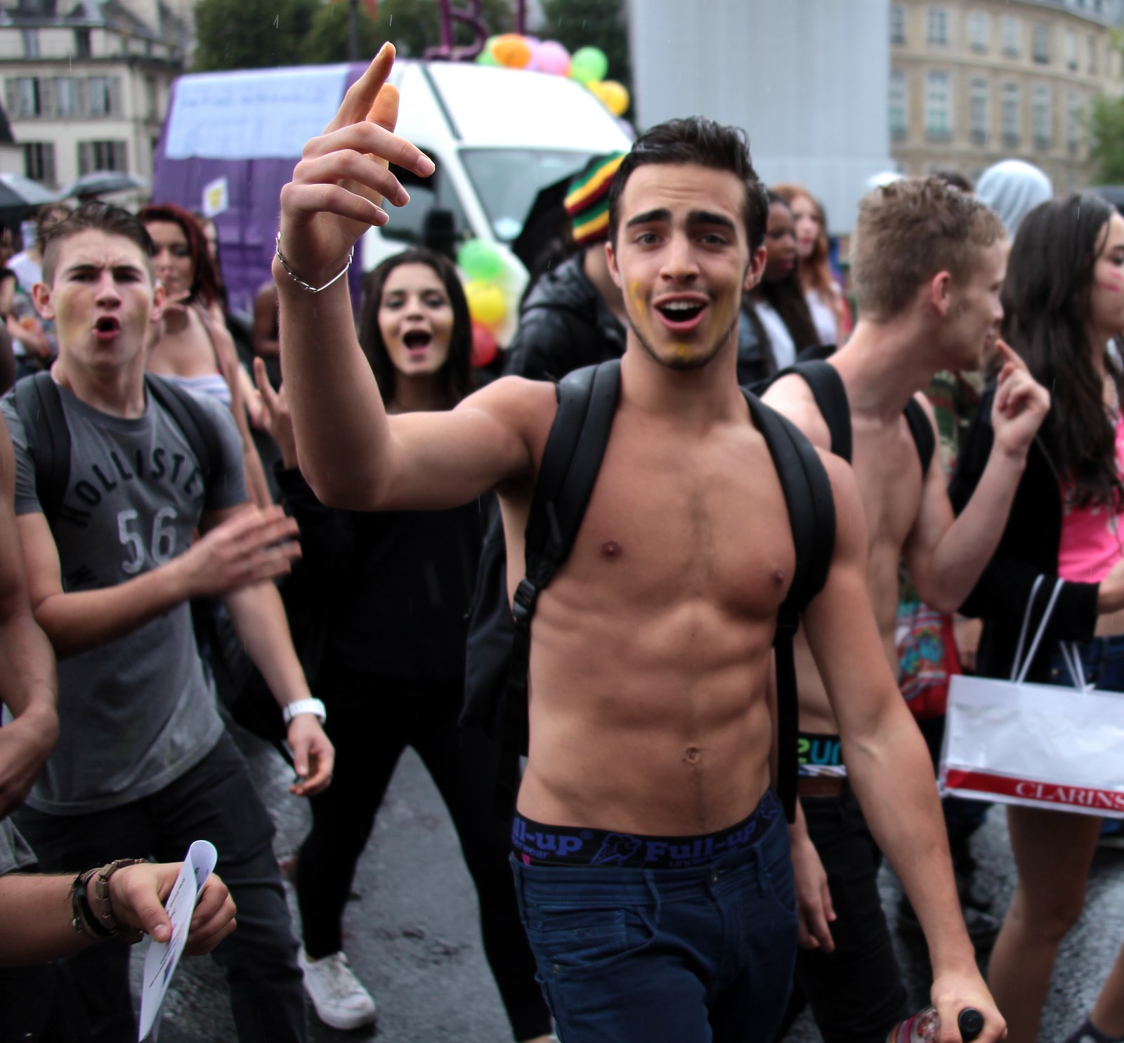 Homme torse nu abdominaux Gay Pride Paris 2014 fiertés lesbiennes gaies bi trans homophobie homosexuel